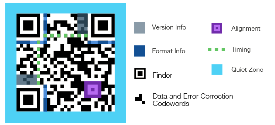 • 用某种特定几何图形按一定规律在平面分步的黑白相间的图形记录数据符号信息